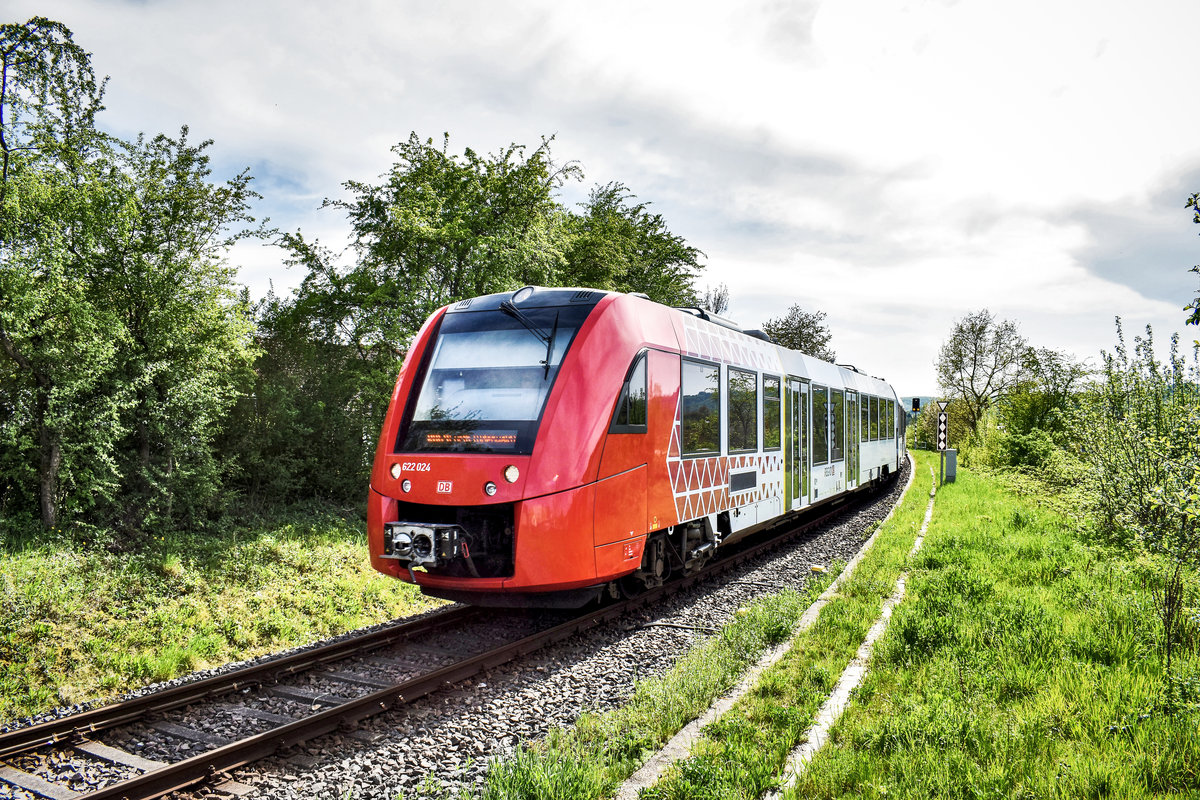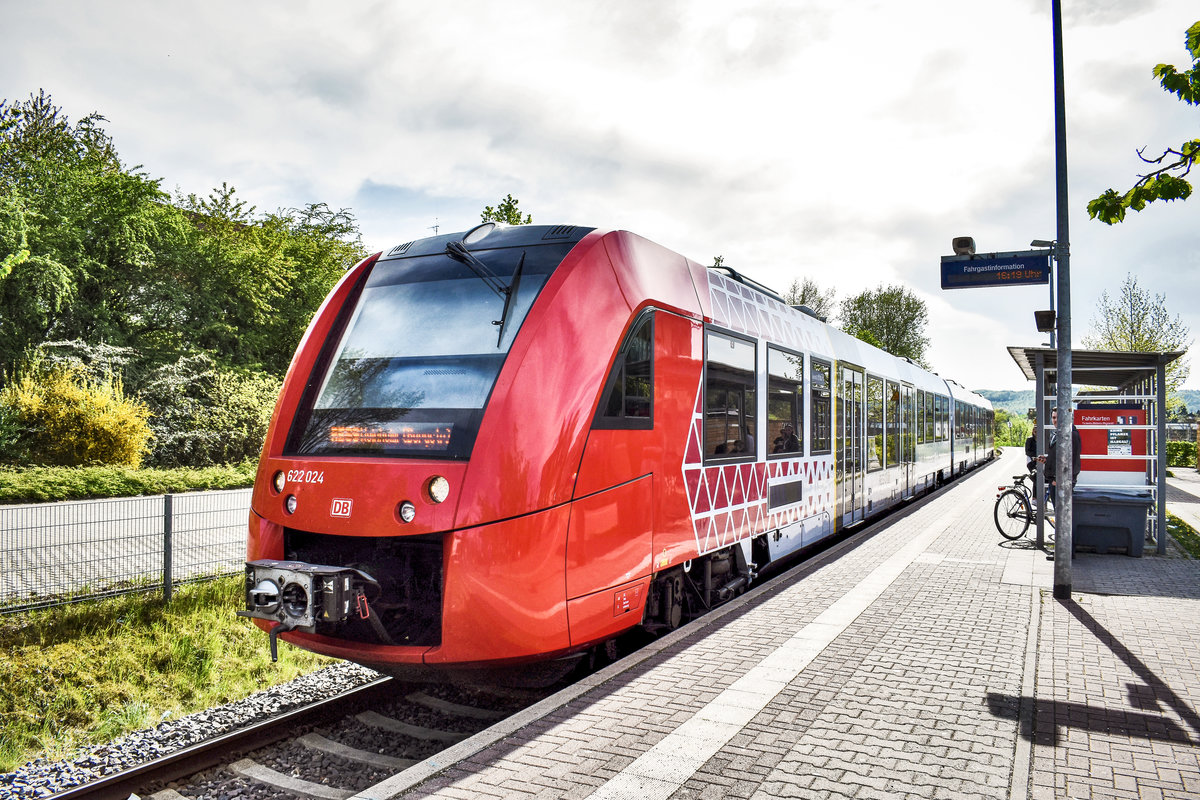 622 024 wartet im Bahnhof Fürth (Odenw), auf die Abfahrt als RB 13342 (Weinheim (Bergstr) Hbf - Fürth (Odenw)).