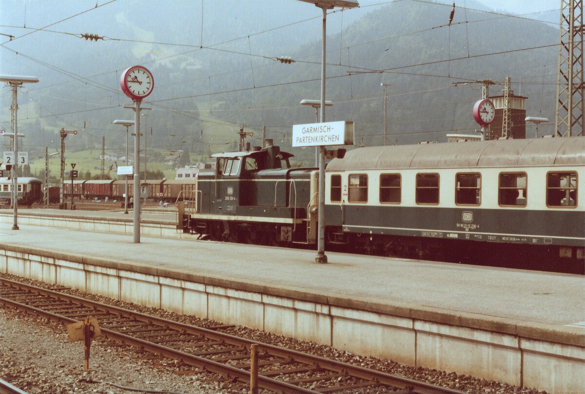Bayerische Zugspitzbahn (BZB): Ein durch und durch sonderbares Gefährt (Wagen 3 von MAN) auf dem zweiten Gleis des früheren Bahnhofs Garmisch Zugspitzbahn. Der später restaurierte Güterwagen soll wohl immer noch regulär eingesetzt werden. Er ist ein geschlossener Gw, der als Vorstellwagen zum Transport von Lebensmitteln und Koffern auf die Zugspitze genutzt wurde. Er zählte schon 1929 zur Erstausstattung der Hochgebirgsbahn.