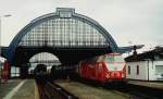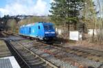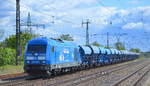 Die E-40 der PRESS 104 046-0 am Haken der PRESS 285 101-5 TRAXX DE (9288 0076 001-1 B-BTK) auf dem Weg durch Gera am 16.5.2020