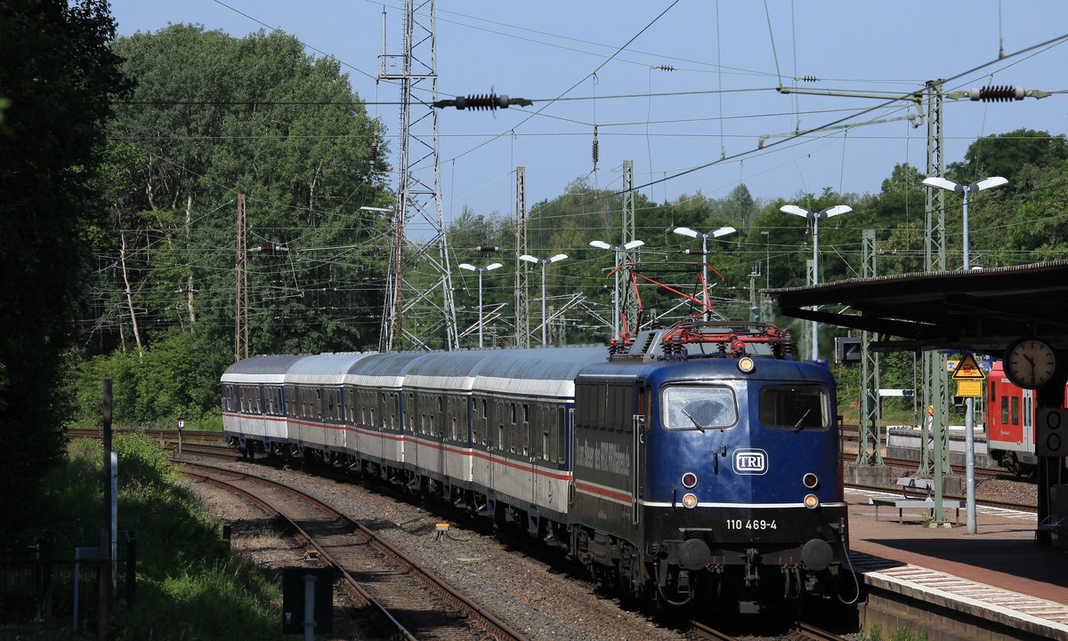 Am 05.05.2022 fährt 111 074 in Gruiten ein. Das Foto war als Streiflichtaufnahme mit kompletten Zug gepant, aber die Sonne zog es vor, sich hinter die berüchtigte Fotografenwolke zu verziehen und eine verspätete S 8 gab auch erst im allerletzten Moment den Blick auf den RB 48-Ersatzzug frei.