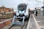 DABpbzfa mit Schublok 112 166 der Elbe-Saale-Bahn (DB Regio Südost) als verspäteter RE 16325 (RE30) von Calbe(Saale) Ost nach Naumburg(Saale)Hbf erreicht Halle(Saale)Hbf auf Gleis 8. [2.12.2017 | 15:53 Uhr]