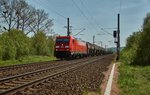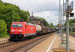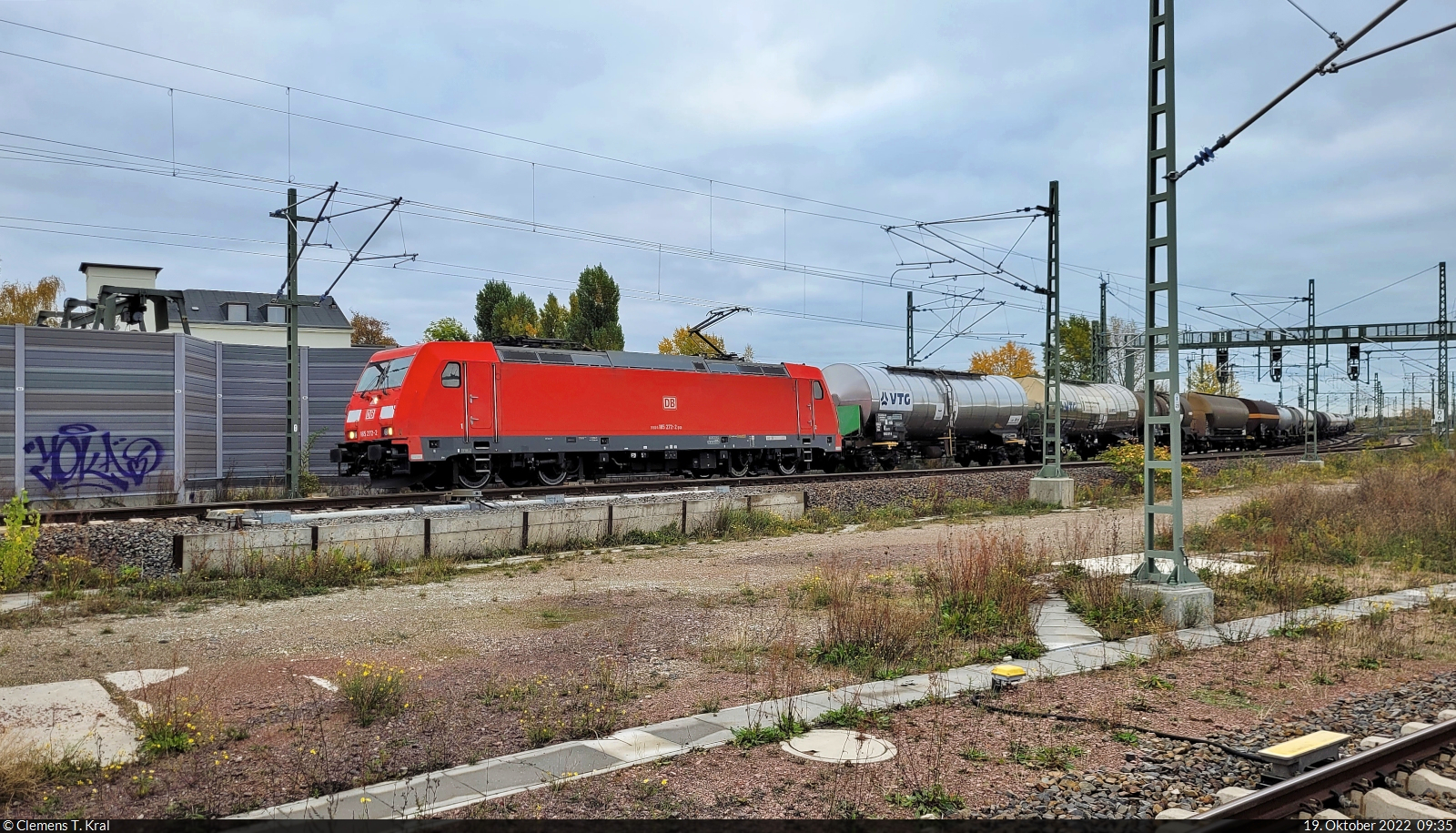 Kesselzug mit 185 272-2 passiert Bahnsteig 12/13 in Halle(Saale)Hbf Richtung ZBA Halle (Saale).
