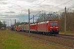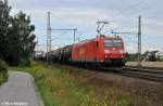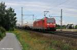 Die beinahe blitzblanke 185 184-9 rangiert in die Zugbildungsanlage (ZBA) Halle (Saale).