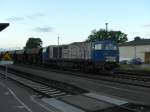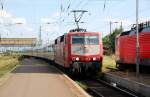 Vierachsiger Schüttgutwagen mit der Bezeichnung  Taoos  (37 80 0693 277-6 D-VTGCH), eingereiht in einem EZ mit 185 054-4 und fotografiert bei der Vorbeifahrt an Halle(Saale)Hbf von Bahnsteig 12/13.