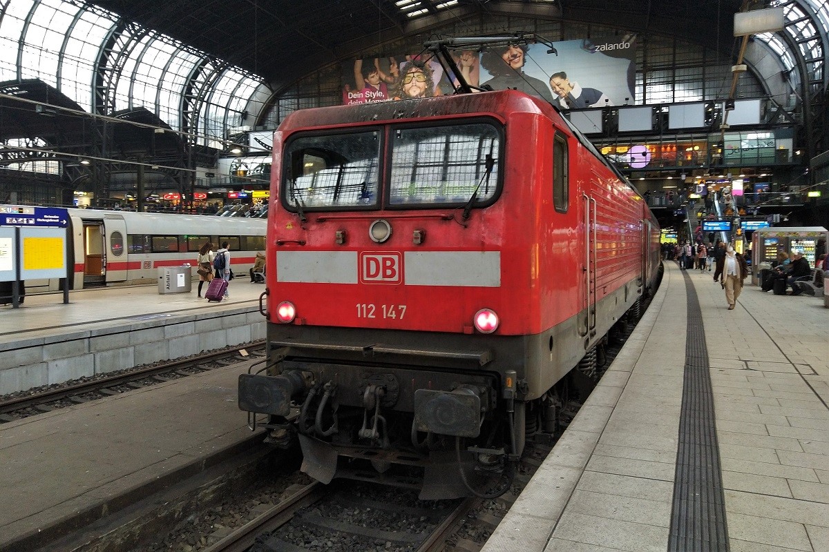 103 222-6 schiebt einen Messzug aus dem Hamburger Hbf.