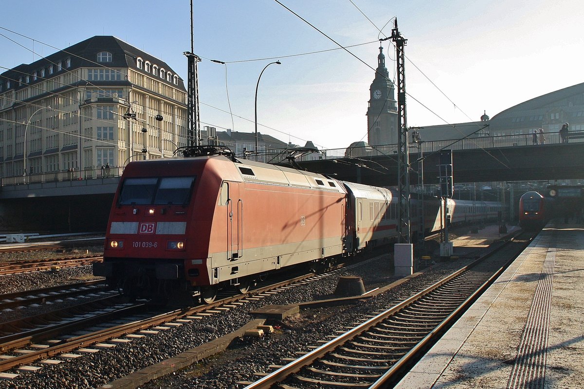 101 039-6 macht sich am 28.1.2017 mit dem IC2072 von Dresden Hauptbahnhof nach Westerland(Sylt) in Hamburg Hauptbahnhof auf den Weg.
