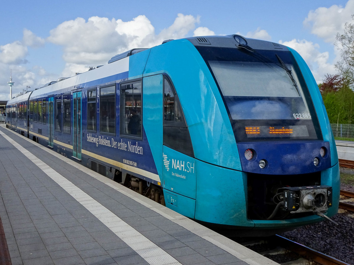 218 489 mit IC 826  Theodor Storm  (Nürnberg–Köln–Westerland) am 06.04.1997 in Heide (Holst)
