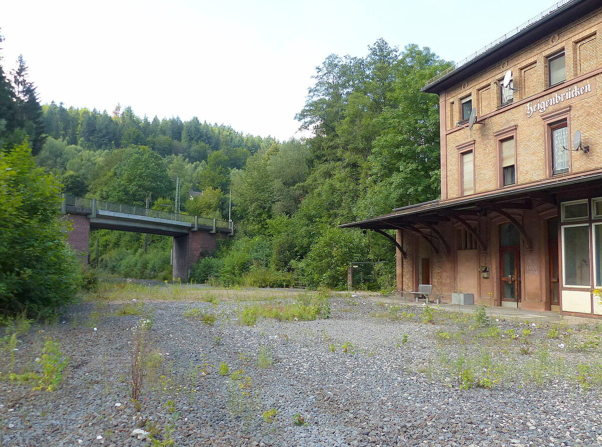 Das ausgediente Bahnhofsgebäude in Heigenbrücken, am 25.08.2021.