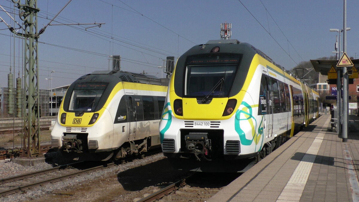 In einer verschneiten Nacht verlässt die soeben angekommene S1 aus Plochingen den Bahnsteig und der ET 423 wird wieder zur Abfahrt umgestellt...