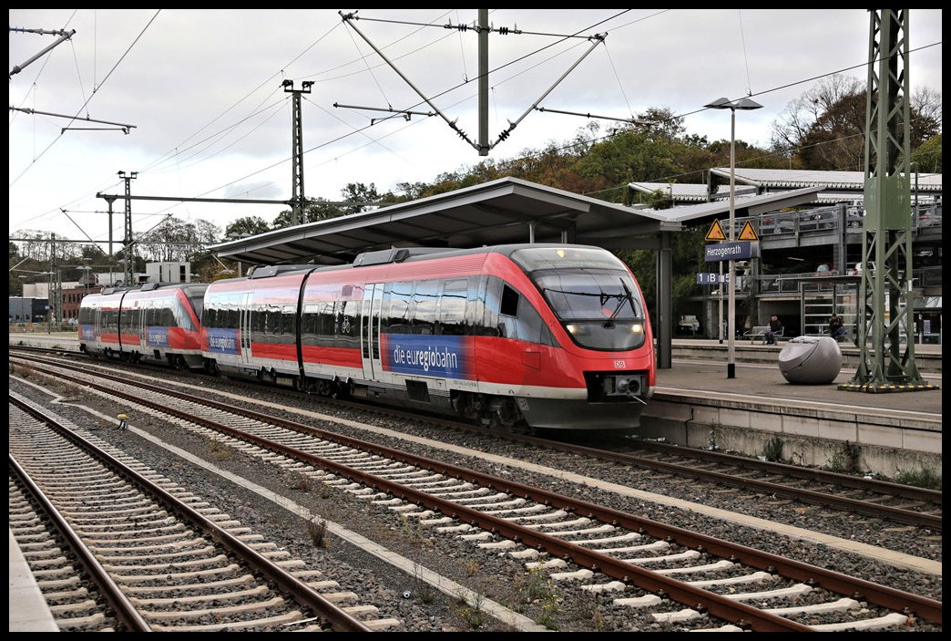 Ein Holländischer Regionalzug aus Aachen-Hbf(D) nach Maastricht(NL) und kommt aus Richtung Aachen-West,Laurensberg,Richterich,Kohlscheid und hält in Herzogenrath.