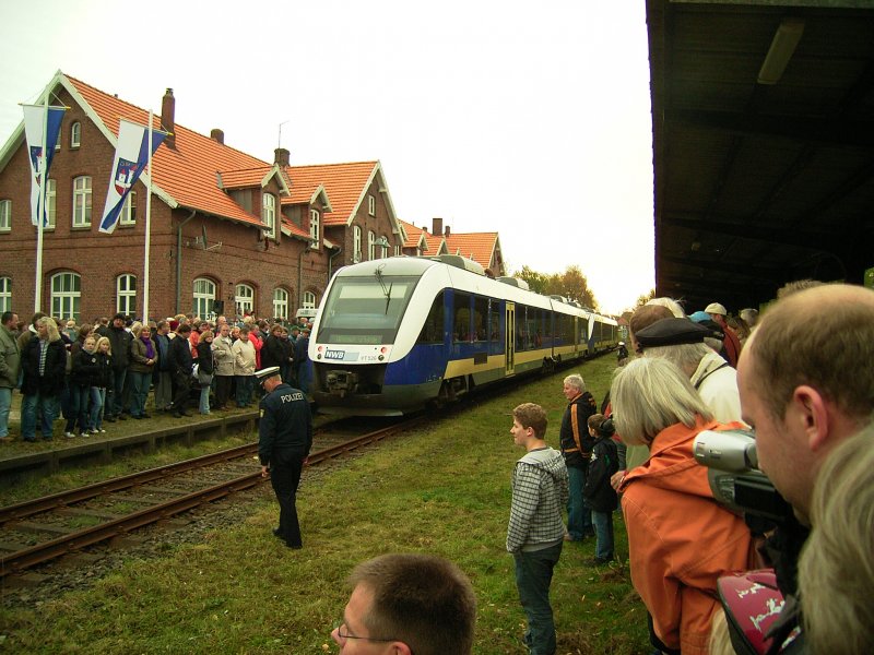 Auf dem sonnst eher verwaistem Bahnhof drängeln sich ca 1500 Menschen, die dem Event beiwohnen möchten - auch an der Strecke (KBS 393) stehen die Menschen spalier, um diesen seltenen Gast begrüßen zu können.