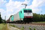 186 428-9 RTB Cargo als gemischter Gz durchfährt den Bahnhof Jüterbog Richtung Berlin. [8.7.2017 - 12:48 Uhr]