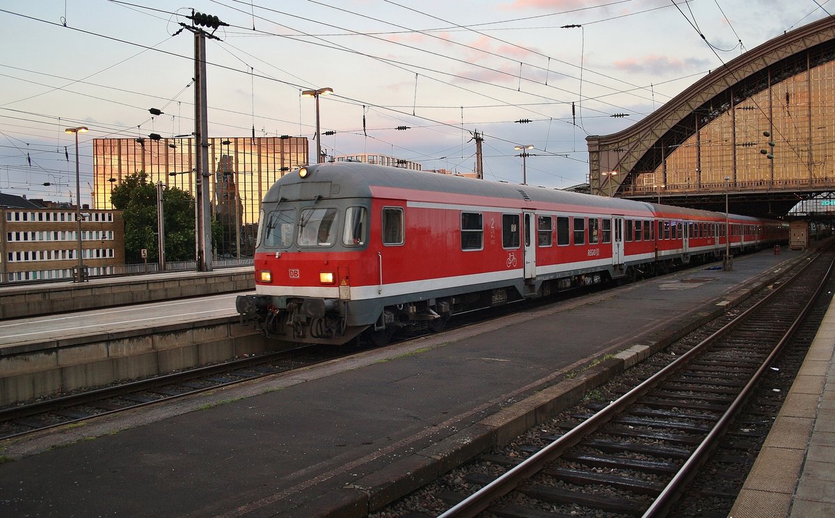 RE9 (RE11596) "Rhein-Sieg-Express" kam am Abend des 2.7.2017 von Siegen nach Köln Hauptbahnhof, soeben wird dieser in die Abstellung verlassen. Schublok war 111 037-8.