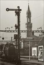 Da staunt der Seehas, daß die alte Schabracke mit ihm FLIRTet. 042 018-2 will Eindruck schinden und macht mächtig Dampf am 01. Mai 2006. Dahinter der Bahnhofs-Campanile noch ganz ohne sein Dauergerüst. Wer kennt den Turm in Italien, der mit einer kleinen aber wesentlichen Änderung Vorlage des Architekten war?