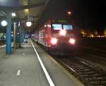 Wer genau hinschaut, sieht die seltsamen Pfeile auf dem Bahnsteig. Hier sollten die Fahrgäste des IR bzw. vorher des ICN Richtung Schweizer Bahnhof gelenkt werden. Tatsächlich standen die Züge am gleichen Ort wie die ICs der DB. Daher hat man das Schengen-Abkommen schon einige Jahre praktiziert. Wer von der Unterführung zum See am anderen Ende des Bahnsteigs kam, stieg immer gleich dort ein. Besonders pflichtbewusste Zeitgenossen mussten dann einen Umweg von mehr als 5 Minuten durch die Grenzkontrolle machen. Ob mit oder ohne bürgerlichen Ungehorsam, der Spuk hat nun ein Ende. Oder zumindest fast. Wer Waren dabei hat muss immer noch durch den Zoll. Denn die Schweiz ist nach wie vor kein EU-Mitglied, die benachbarten Thurgauer waren beim Nein zum EU-Beitritt das unrühmliche Zünglein an der Waage. (Weihnachten 2009)