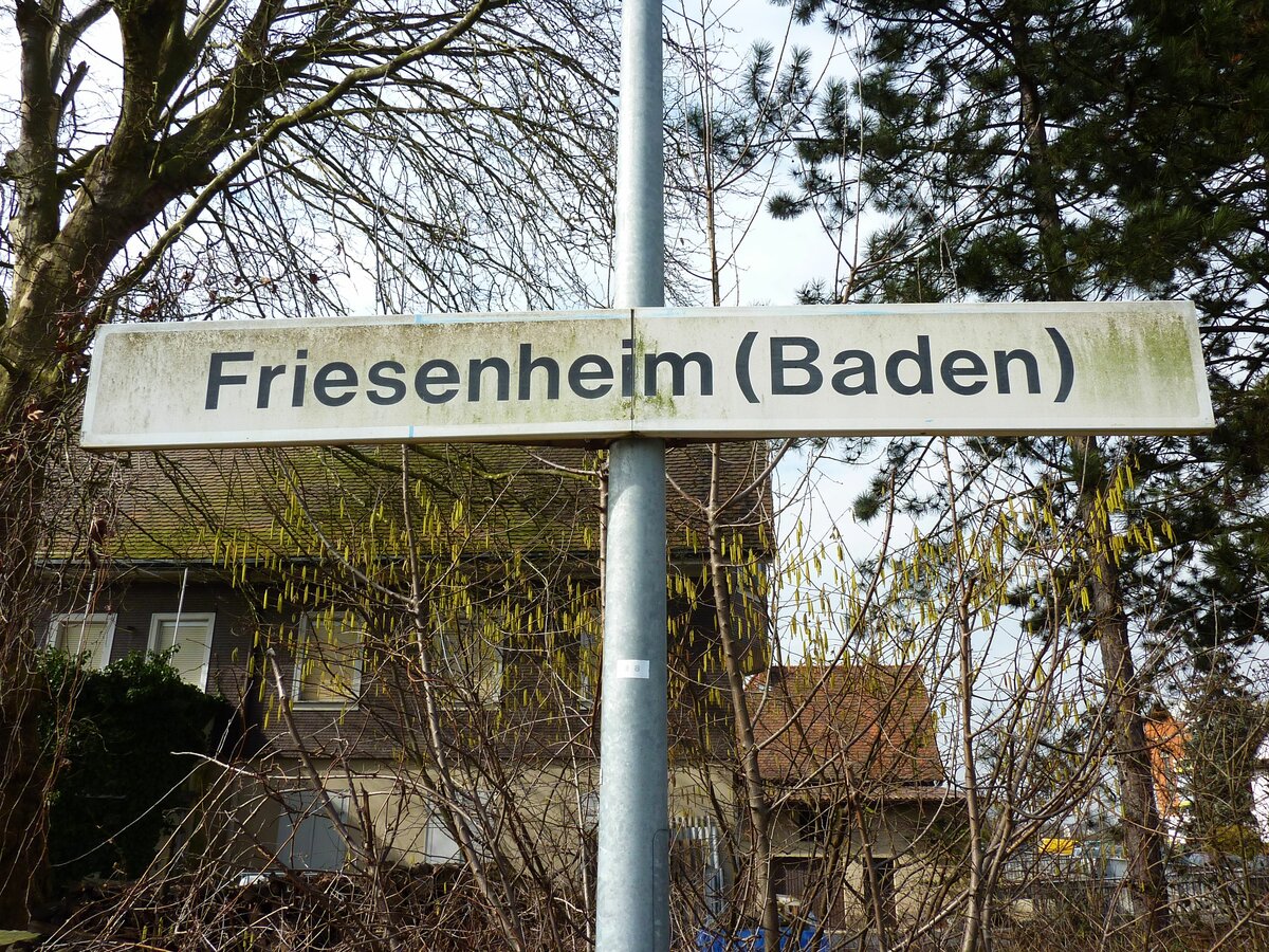 Lagergebäude in Friesenheim (Baden), Rheintalbahn, bei Ausfahrt aus dem Bahnhof nach Norden Richtung Offenburg, aufgenommen am 07.03.2013