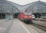 Hier 218 390-3 mit einem RE16 von Hof Hbf. nach Leipzig Hbf., bei der Einfahrt am 14.5.2010 in Leipzig Hbf.