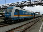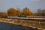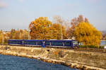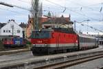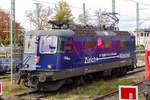 Abschied von der Schweizer Baureihe Re 421 in Lindau (hier: Re 421 379 in Warteposition) am für Ausländer letztmöglichen Tag = 08.12.2020. Am Tag darauf hätte ein Grenzübertritt zu Quarantäne geführt, und ab 13.12. steuert kein lokbespannter EC mehr Lindau Hbf. an. Damit ist eigentlich auch die Werbebotschaft auf der Lok hinfällig - sie wurde von der Realität überholt.