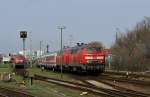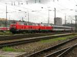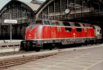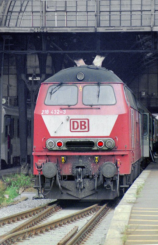 Lübeck Hbf 1989. Die 218 432 hat gerade einen Wendezug aus Travemünde angebracht.