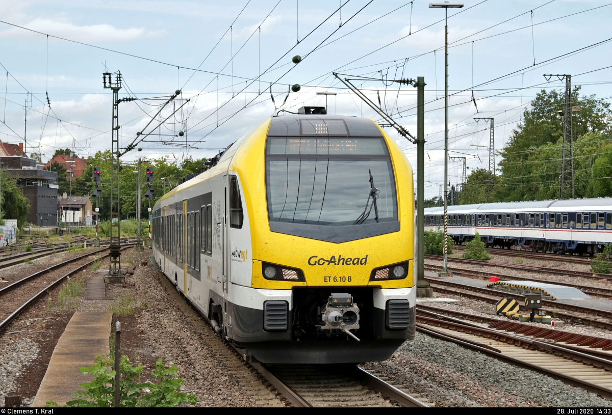 1430 553-6 (ET 6.10) und 1430 550-2 (ET 6.07 | Stadler FLIRT 160) der Go-Ahead Baden-Württemberg GmbH (GABW) als umgeleiteter und verspäteter RE 19017 (RE1) von Karlsruhe Hbf nach Stuttgart Hbf durchfahren den Bahnhof Ludwigsburg auf Gleis 4.