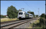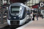 In Lüneburg am Bahnsteig standen am 14.7.23 die 3 ehemaligen dänische Triebwagen 5883, 5834 und 5877 auf ihrer Reise nach Rumänien.