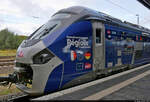 Schwer zu schleppen hatte 265 024-0 (Voith Gravita 15L BB), als sie mit einem offenen Güterwagen durch den Bahnhof Magdeburg-Neustadt Richtung Magdeburg-Rothensee fährt.