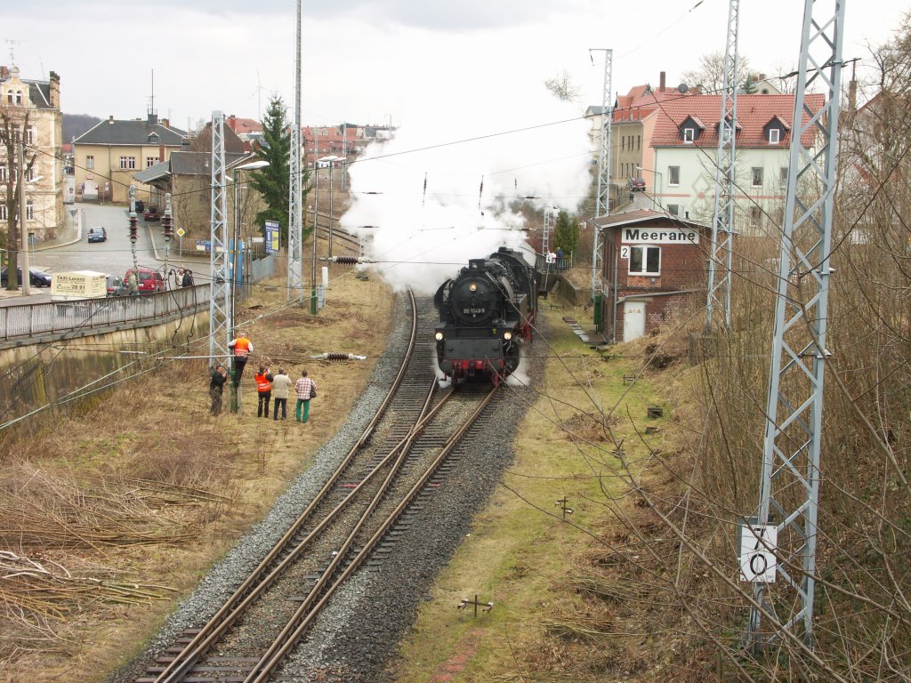 Das Bild wurde vom örtlichen Fotografen aufgenommen und stellt das Bahnpersonal zur damaligen Zeit im Bahnhof Meerane dar.