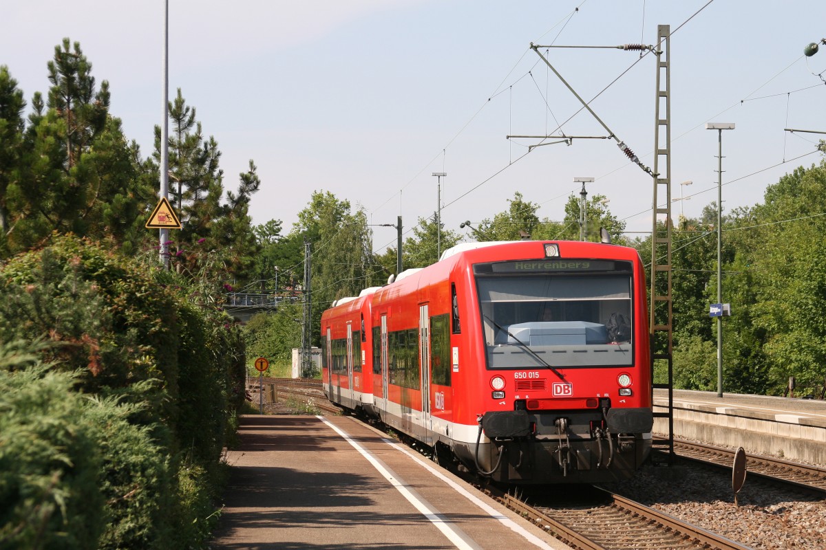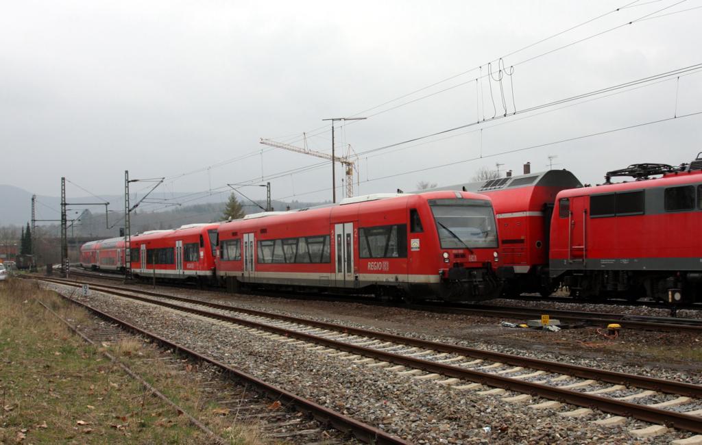 Einfahrt des VT 650015 aus Bad Urach am 26.3.2015 in den Bahnhof Metzingen.