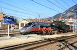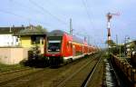Hier steht ein Doppelstockwagen der 3.Generation als RE4 nach Dortmund vor einem ET422 Doppel am 3.2.2012 in Mönchengladbach.