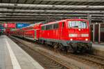 DB 111 052-7 mit RE in München Hbf, August 2019.