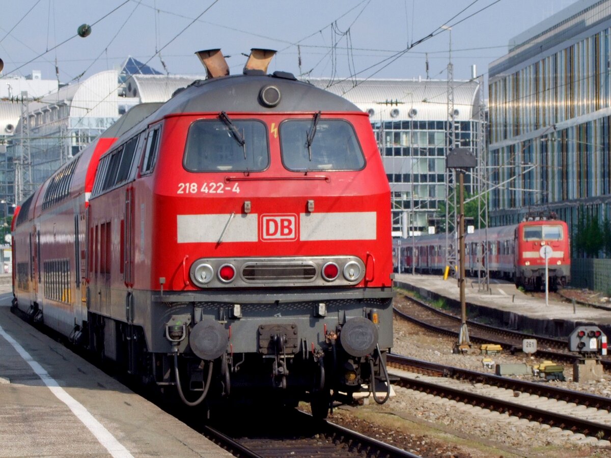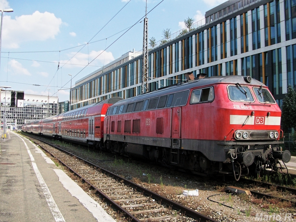 218 404 an einer RB nach Mühldorf, am 10.Juli 2013 am Münchner Hauptbahnhof.