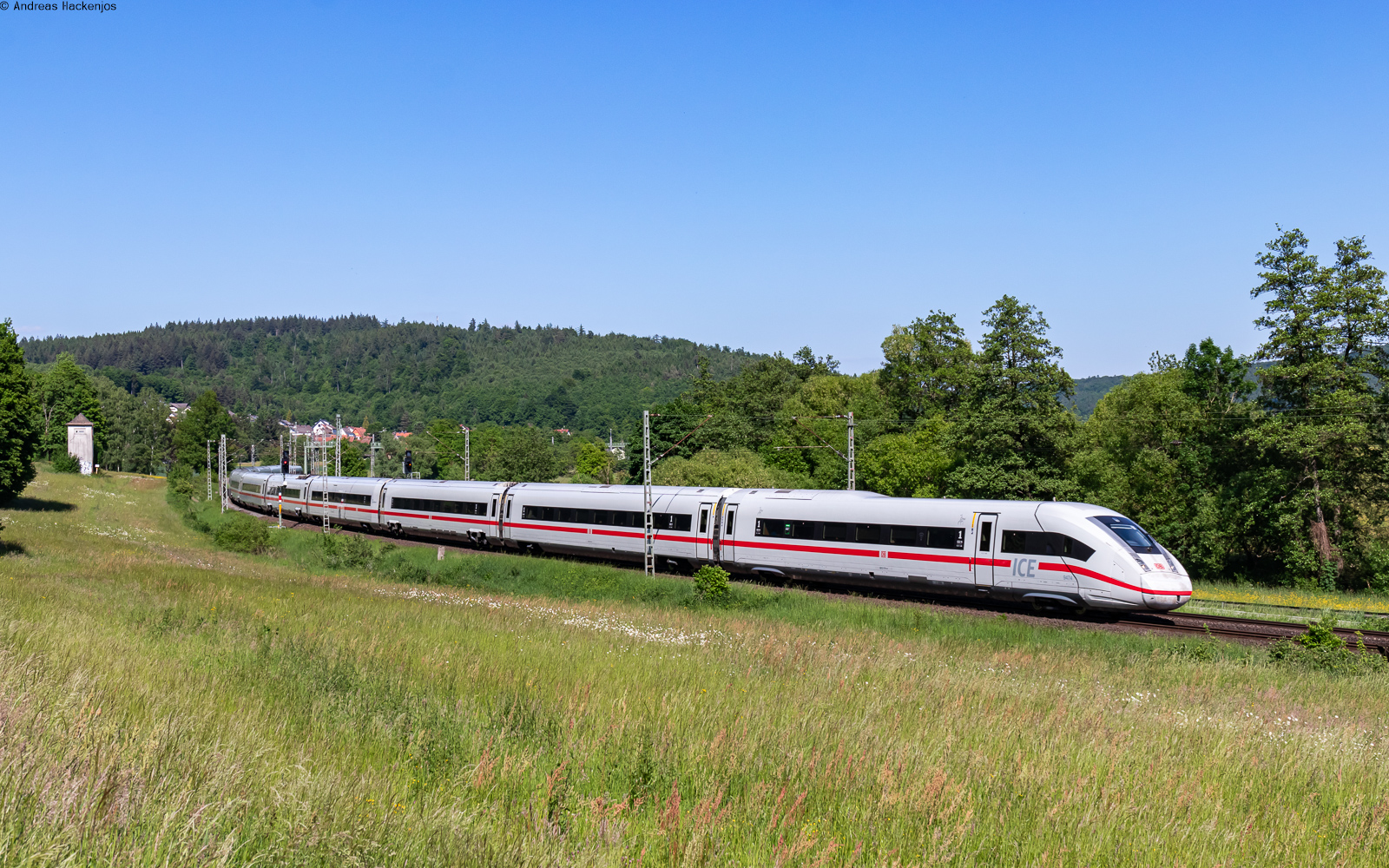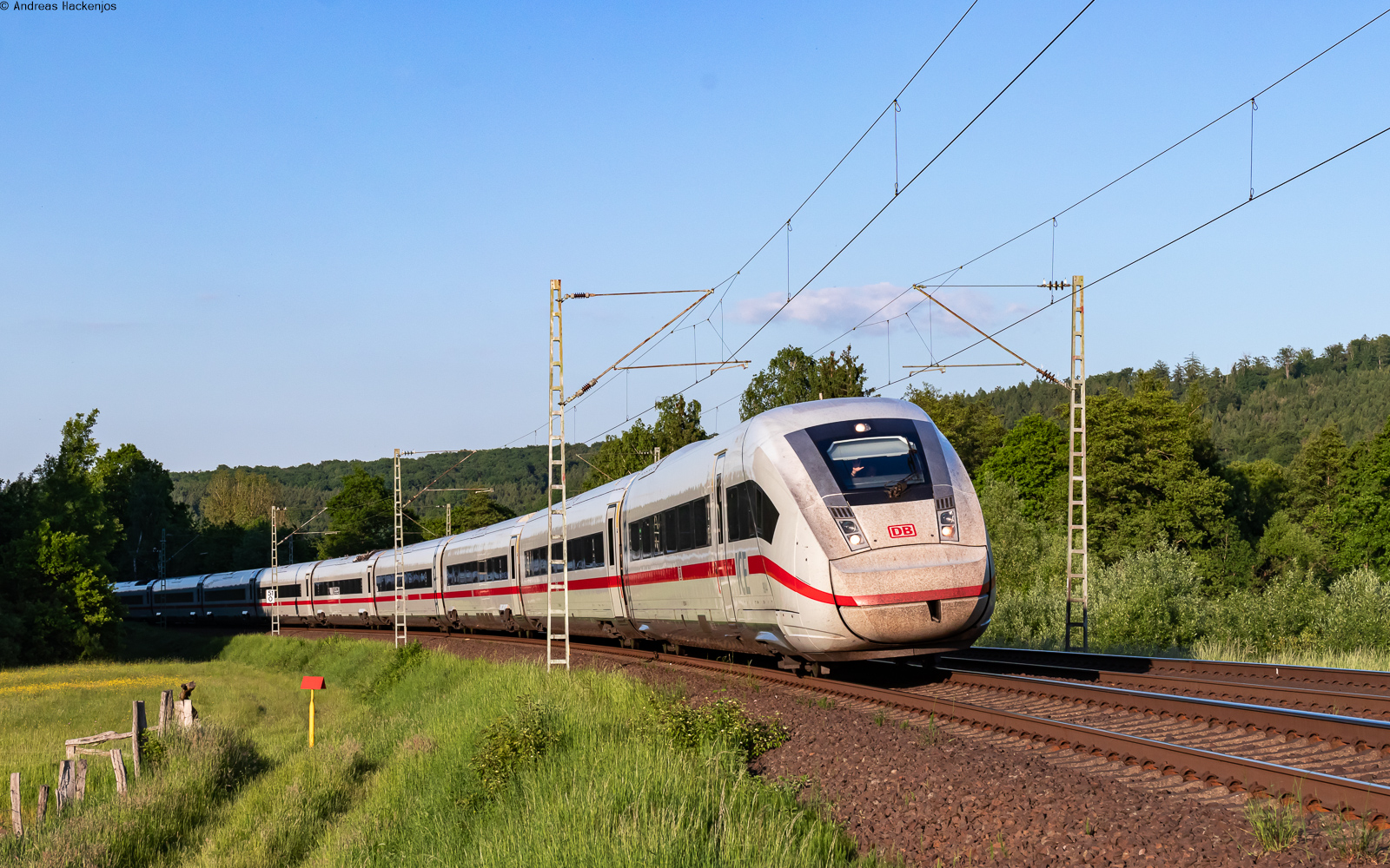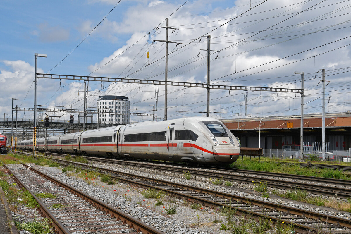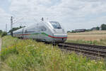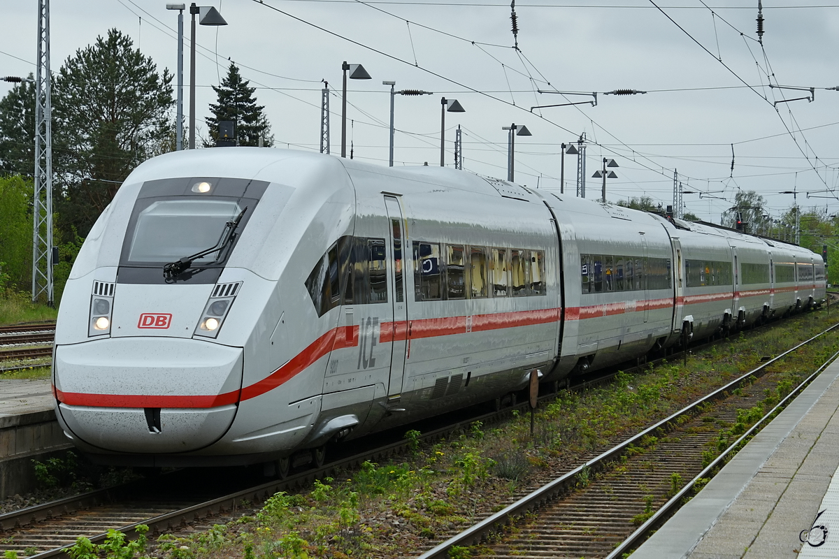 Ein ICE4 (9207) ist gerade am Hauptbahnhof in Neustrelitz angekommen. (Mai 2021)