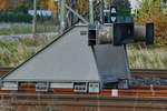 Prellbockstudie Nr.2 - hier ein recht moderner Prellbock. (Neustrelitz, Mai 2021)