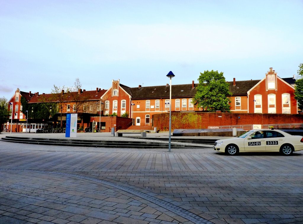 Die RS4 nach Bremen Hbf der NordWestBahn hat gerade den Startbahnhof Nordenham verlassen und fährt vorbei am Rangierbahnhof Nordenham.