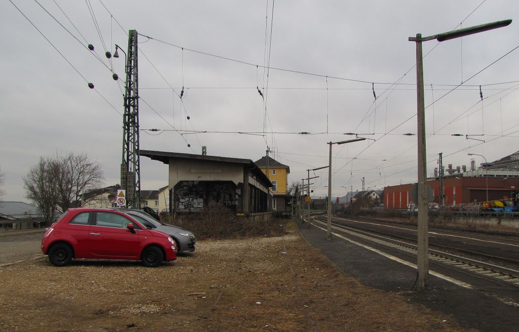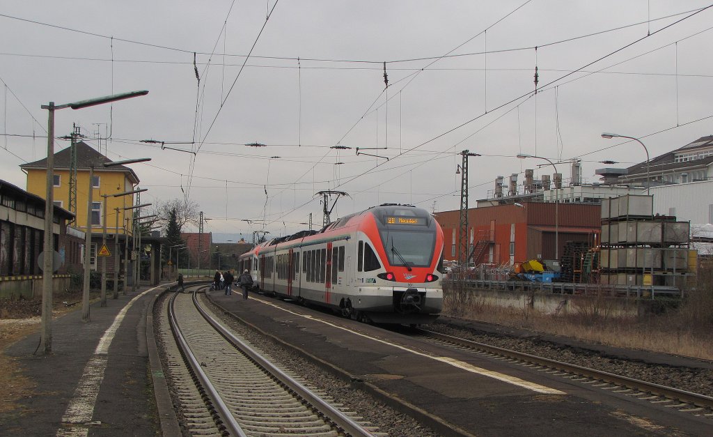 Die beiden Hauptgleise der KBS 466 und daneben zwei teilweise zurückgebaute Güter- bzw. Rangiergleise in Oestrich-Winkel, Blick in Richtung Hattenheim; 24.02.2012