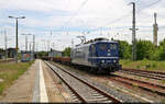 S(unset)-Bahn mit 9442 615 (Bombardier Talent 2) bei der Ausfahrt im Bahnhof Röblingen am See auf Gleis 1.