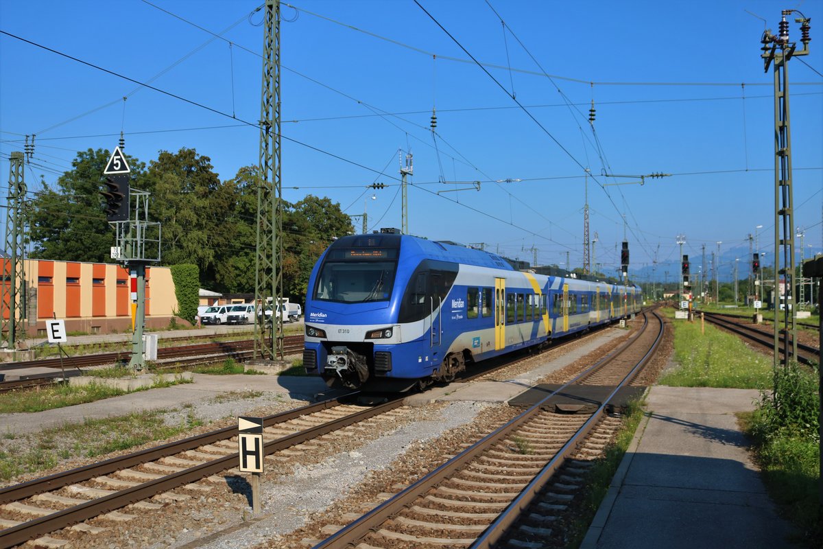 Transdev Meridian Stadler Flirt 429 ET310 am 09.08.20 in Rosenheim Bhf vom Bahnsteig aus fotografiert