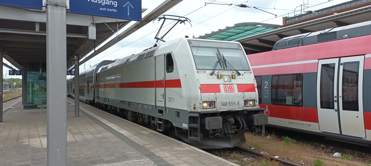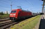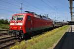 RE18440 von Berlin Hauptbahnhof (tief) nach Rostock Hauptbahnhof verlässt am 12.8.2017 den Zielbahnhof in Richtung Süden/BW. Zuglok war 112 165.