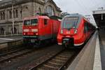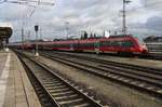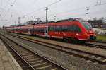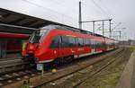 442 340-6 verlässt am 3.2.2018 als RE1 (RE13984) von Rostock Hauptbahnhof nach Bad Kleinen den Hauptbahnhof der Hansestadt.