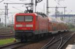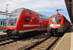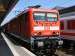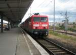 RE5 (RE4361) nach Wünsdorf-Waldstadt steht am 3.9.2016 mit 114 005 im Rostocker Hauptbahnhof bereit.