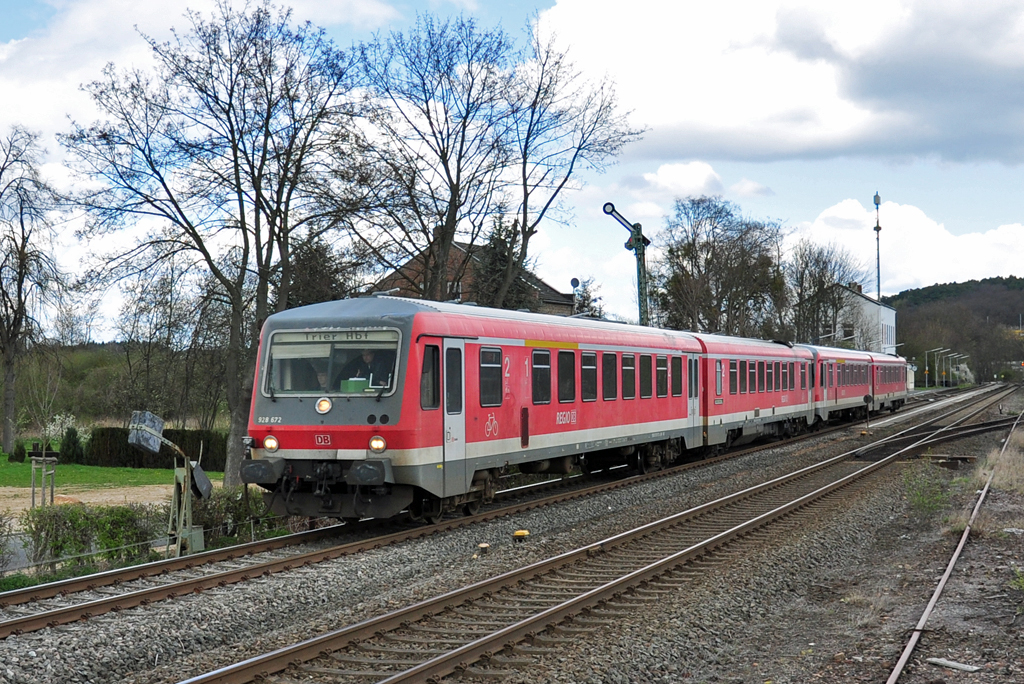 644 507 RB24 nach Gerolstein bei der Abfahrt vom Bf Satzvey, vorbei am brutal schiefen Flügelsignal - 18.04.2013