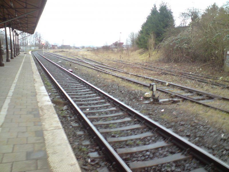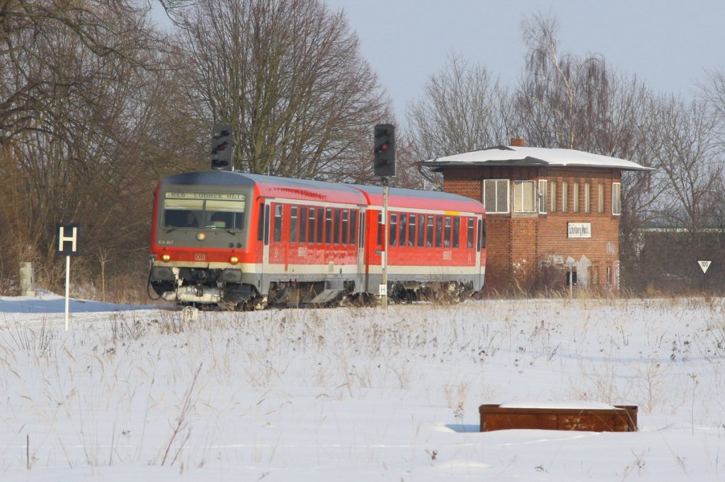 RE 21607 fährt nach kurzem Halt hier in Schönberg (Meckl.) weiter bis nach Bad Kleinen. Er wird gezogen von einen 218 185-7. 14.06.2008