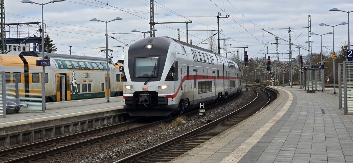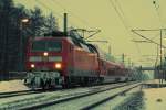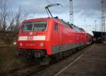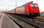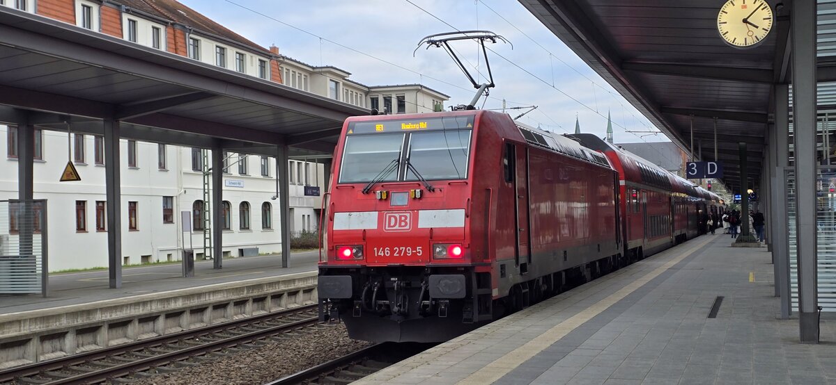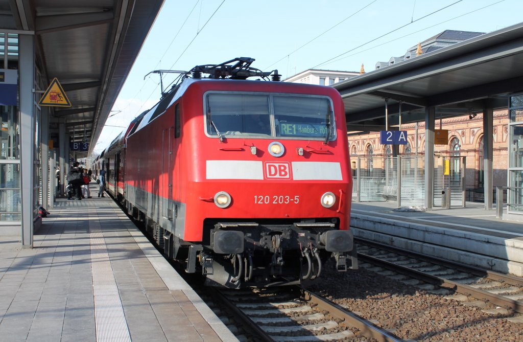 120 203-5 mit RE 1 (RE 4312) von Rostock Hbf nach Hamburg Hbf in Schwerin Hbf am 25.03.2013