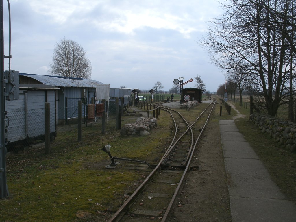 Der Bahnhof Schwichtenberg am 13.April 2013.Hier befindet sich auch der Lokschuppen und die Werkstatt von der 600 mm Museumsbahn.