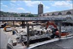 Hbf Stuttgart__Alt vor neu: 163 008-6 beim Rangieren vor dem Zentral-Stellwerk, das ca. 1 Jahr später in Betrieb ging und die bis dahin aktiven 12 Stellwerke ablöste.__14-06-1976 Klaus-Erich Lisk