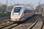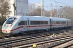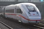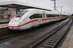 Vermutlich um am Bahnsteig Platz zu machen für einen anderen Zug, fährt dieser ICE 4 hinaus aufs Vorfeld. Etwa eine halbe Stunde später wird er sich auf den Weg nach Hamburg-Altona machen.
