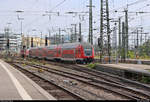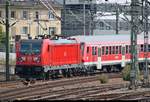 DBpbzfa mit Schublok 147 008-7 von DB Regio Baden-Württemberg als IRE19032 nach Karlsruhe Hbf wird in seinem Startbahnhof Stuttgart Hbf auf Gleis 8 bereitgestellt.