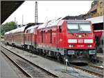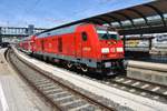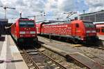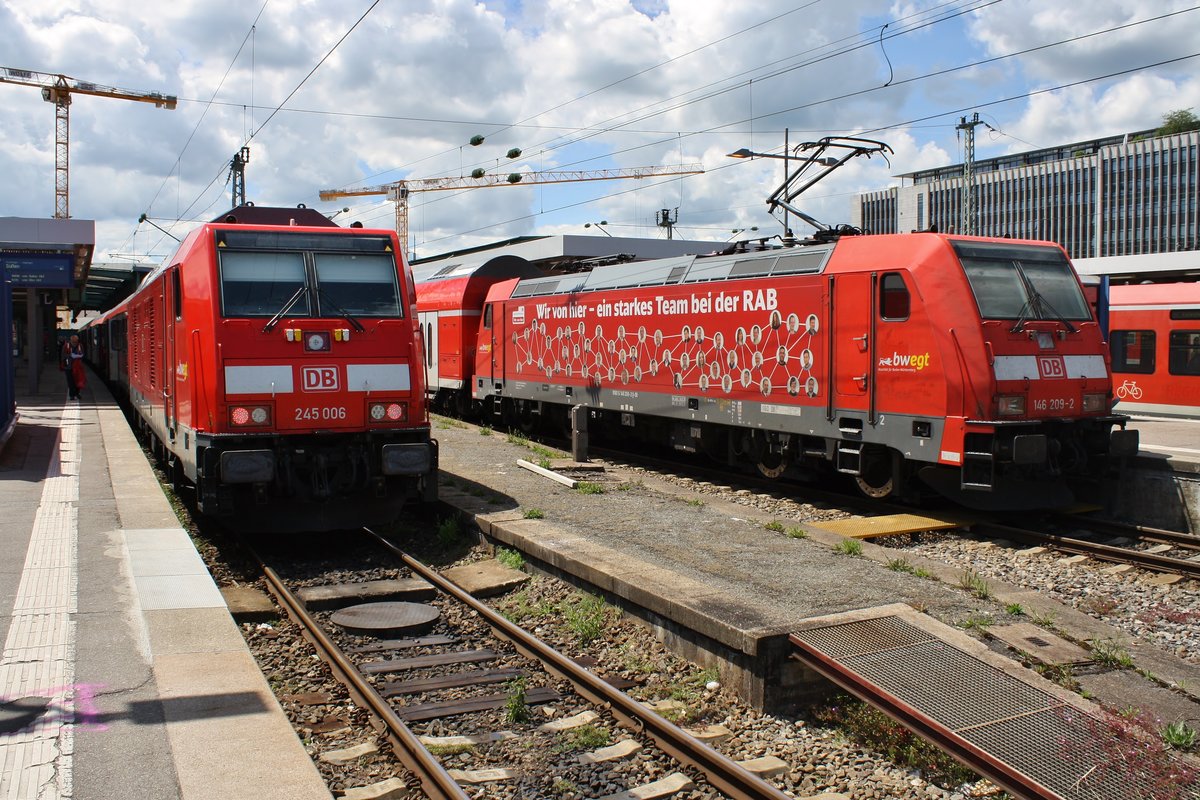 245 006 trifft am 31.05.2019 mit der RB19234 von Süßen im Stuttgarter Hauptbahnhof auf 146 209-2 mit dem RE4216 von Biberach(Riß).