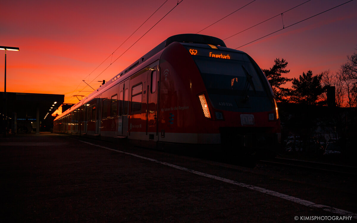 Das Bild zeigt einen an Gleis 3 auf seinen Einsatz wartenden S-Bahnzug in Richtung Stuttgart Hbf. Am Sonntag-Vormittag ganz Menschenleer der Bahnsteig und das Streiflicht gibt den Fenstern eine besondere Wirkung und auch die ausgefahren Schiebetritte wirken auffällig.