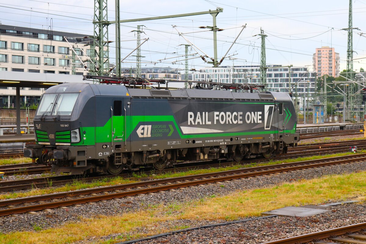 ELL/Raiol Force One Siemens Vectron 193 947-9 am 10.07.24 in Stuttgart Hbf (Oben) vom Bahnsteig aus fotografiert